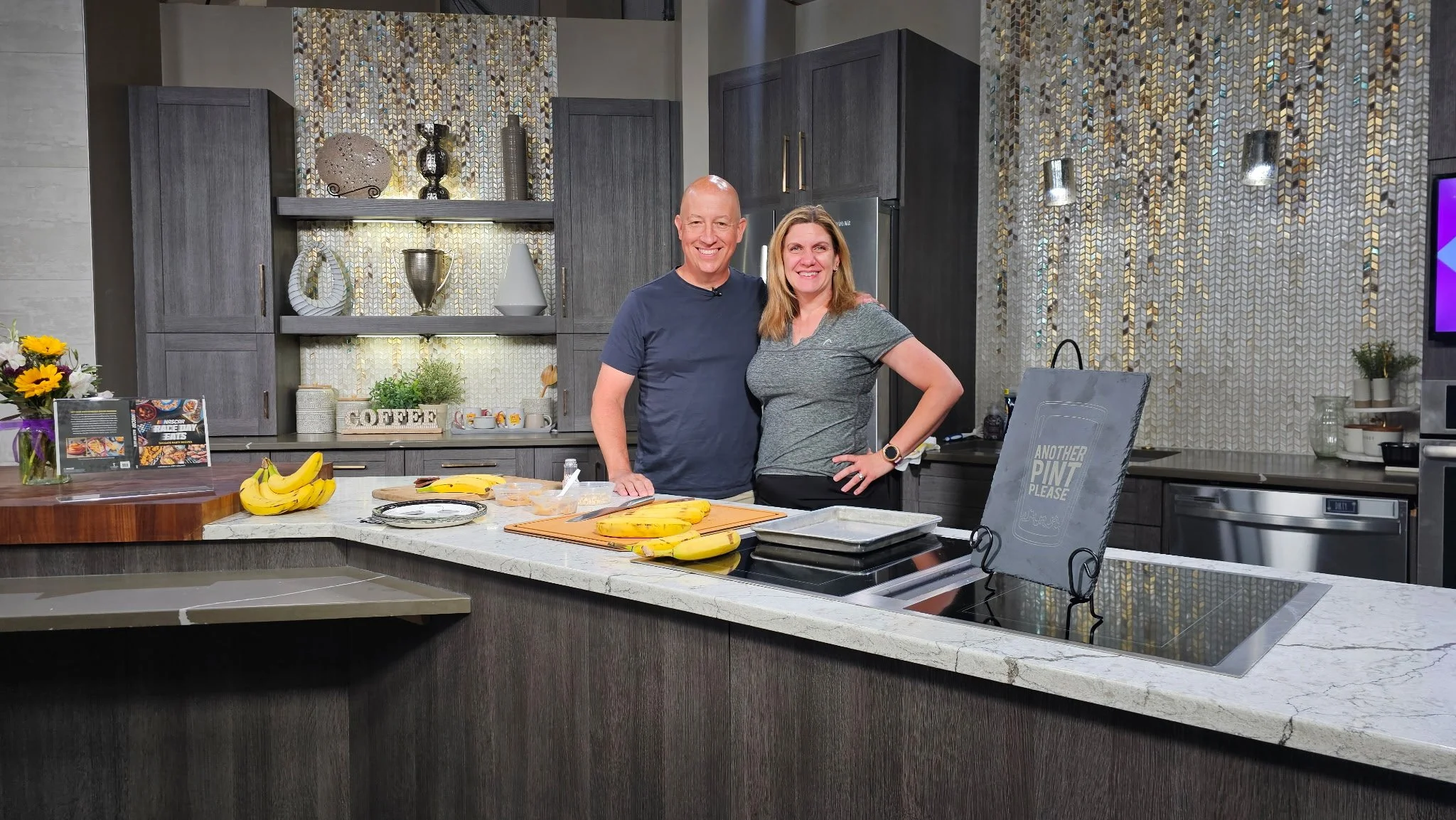 I did two segments with two recipes from Race Day Eats. The first, which is a variation of my classic grilled bananas, was prepared in the set kitchen to show you could use an oven as much as a grill. This new recipe includes peanut butter, which I managed to take a big bite of during our taste. Note to self, do not use peanut butter on live TV. I was unable to talk as I tried my best to swallow the rather thick dollop I managed to spoon out of the peel. If anything, it made for good TV.